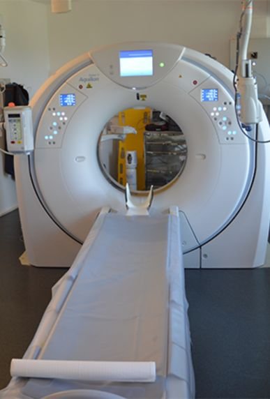 Contrairement à l’IRM, il ne s’agit pas d’un tunnel mais d’une hélice tournant à haute vitesse autour du patient, permettant d’acquérir très rapidement des images. Des coupes précises de l’ensemble du corps humain peuvent ainsi être obtenues.