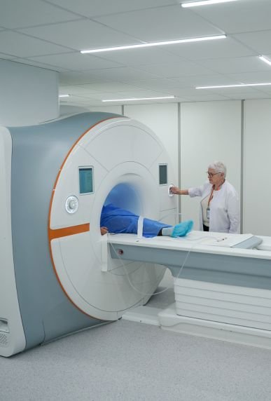 Le patient est en position allongée et progresse dans la machine qui correspond à une sorte de tunnel, ce qui peut poser problème pour les patients claustrophobes ou en surpoids.